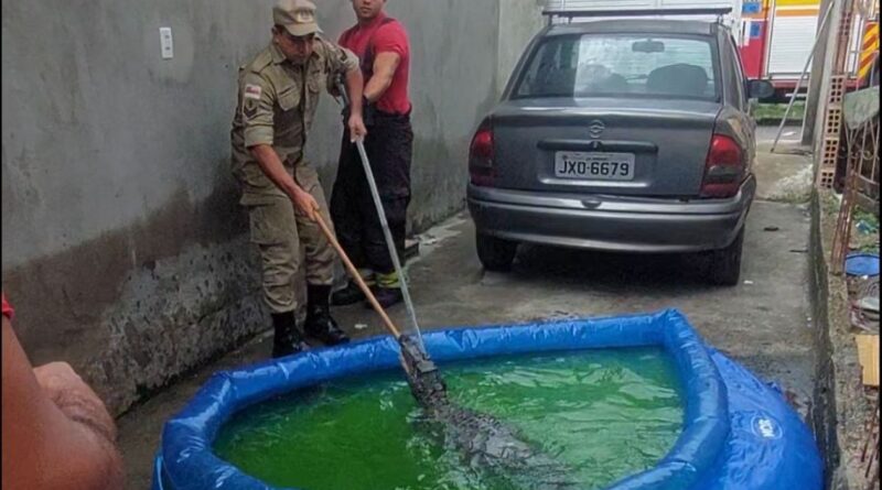 Dona de casa encontra jacaré em piscina de plástico no bairro São José