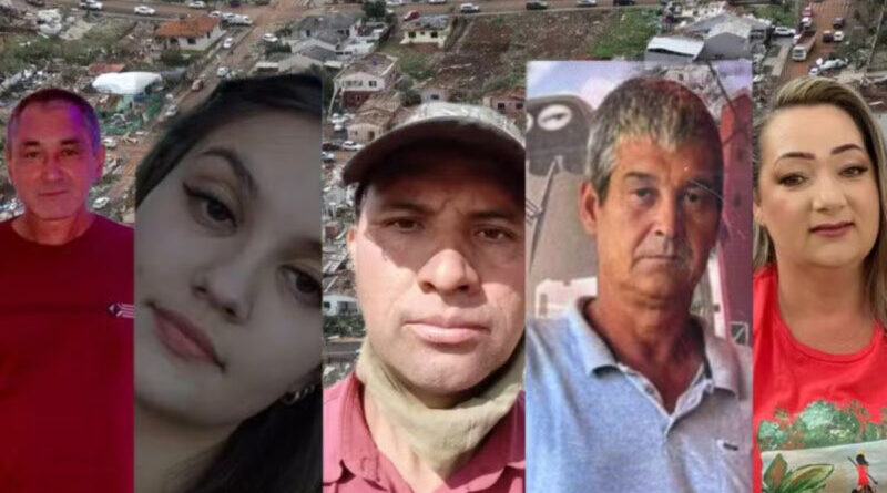 O Governo do Paraná confirmou, neste sábado (8), os nomes das seis vítimas fatais do tornado que atingiu os município de Rio Bonito do Iguaçu na sexta-feira (7). O fenômeno meteorológico foi classificado como EF3 na Escala Fujita aprimorada — um dos níveis mais altos, que indica ventos entre 218 km/h e 266 km/h.