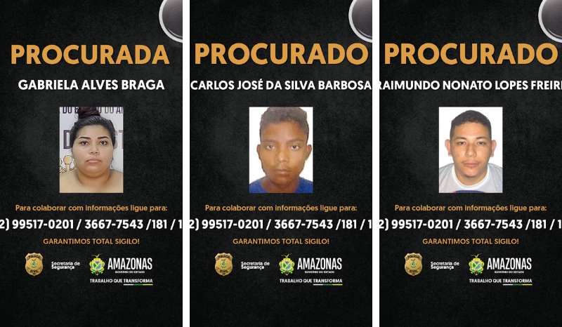 Informações que levem à localização dos foragidos podem ser repassadas de forma anônima pelos números 181 (Disque-Denúncia da SSP-AM) ou (92) 99517-0201, da Delegacia de Manacapuru.