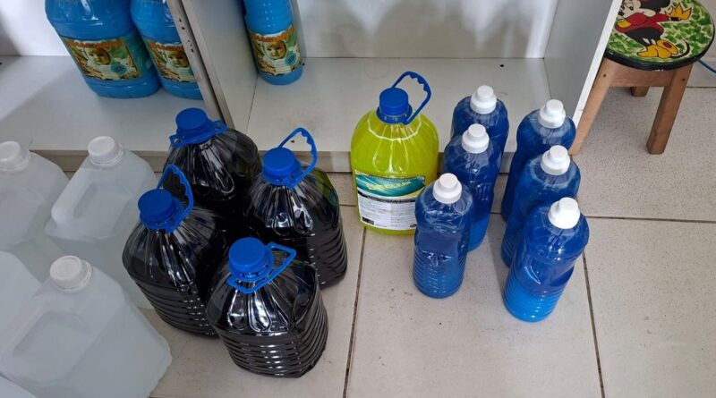 “Deslocamo-nos até o endereço para realizar a fiscalização e constatamos a atividade ilegal. No local, foram encontrados diversos produtos de limpeza envasados em galões e garrafas, sem rotulagem, de origem desconhecida, além de outros com prazo de validade vencido”, informou o delegado.