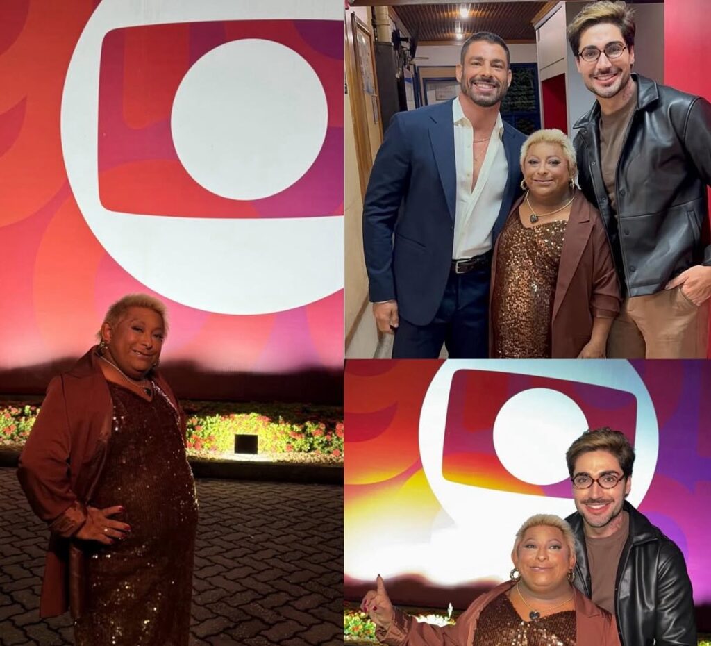 Rainha do Amazonas encontra Cauã Reymond nos bastidores da Globo.