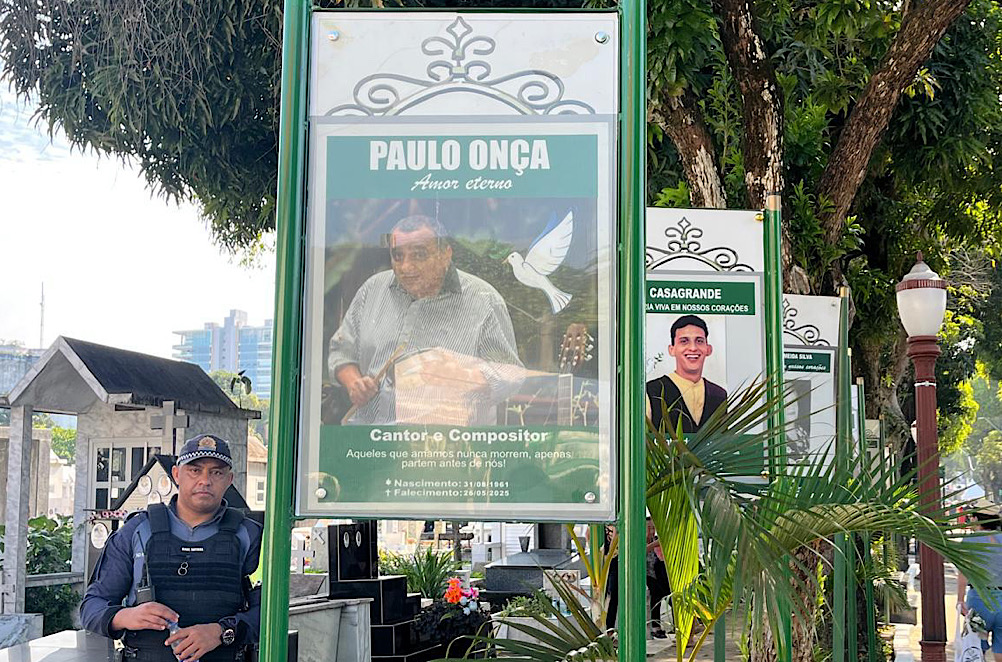 Foi assim neste domingo, Dia de Finados, quando alguns visitantes interromperam sua caminhada para contemplar o banner do sambista Paulo Onça, falecido em 26 de maio deste ano, aos 63 anos, após ter sido agredido durante uma briga de trânsito ocorrida em dezembro do ano passado, em Manaus.
